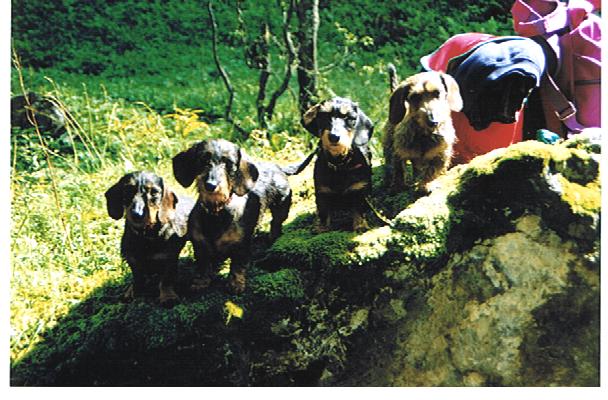 Vacances Boire un petit coup c'est agréable A, A, A la queue leleu Un petit câlin pour tous Encore un petit effort pour arriver au sommet Teckels en randonnée Teckels aux sports d'hiver